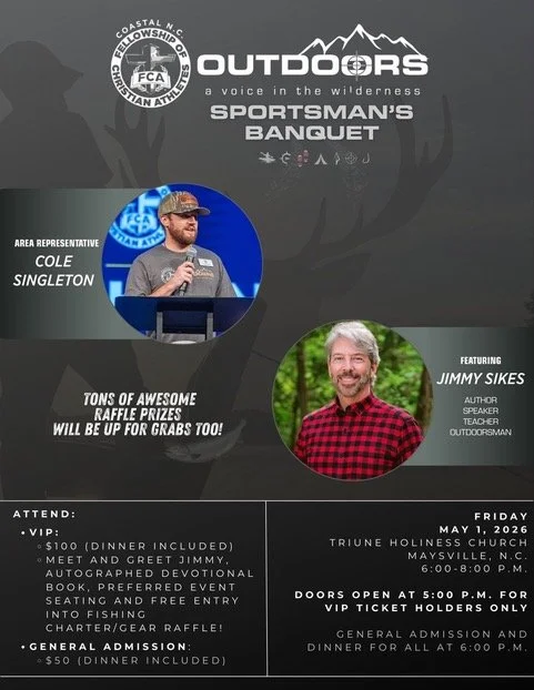 Join the Fellowship of Christian Athletes Outdoors for their upcoming Sportsman’s Banquet featuring outdoorsman and speaker Jimmy Sikes.