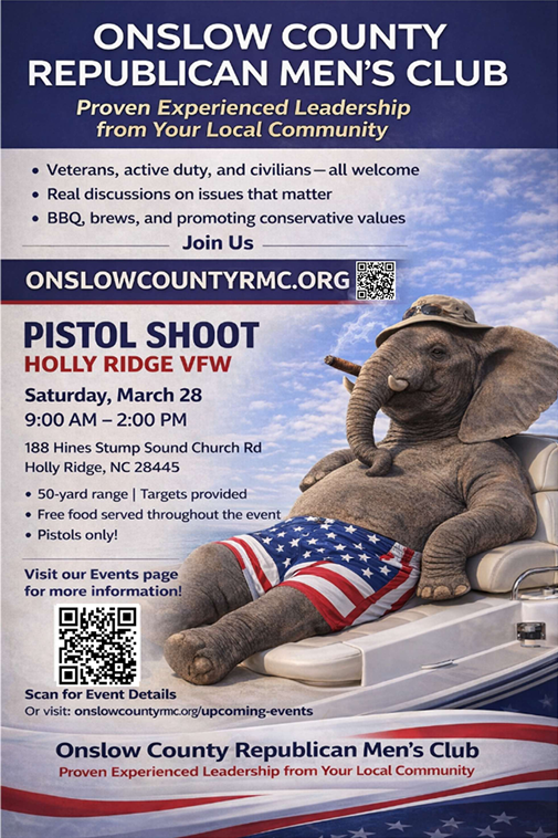 Pistol Shoot – Holly Ridge VFW Join fellow members of the Onslow County Republican Men’s Club for a fun, safe pistol shoot at the Holly Ridge VFW!